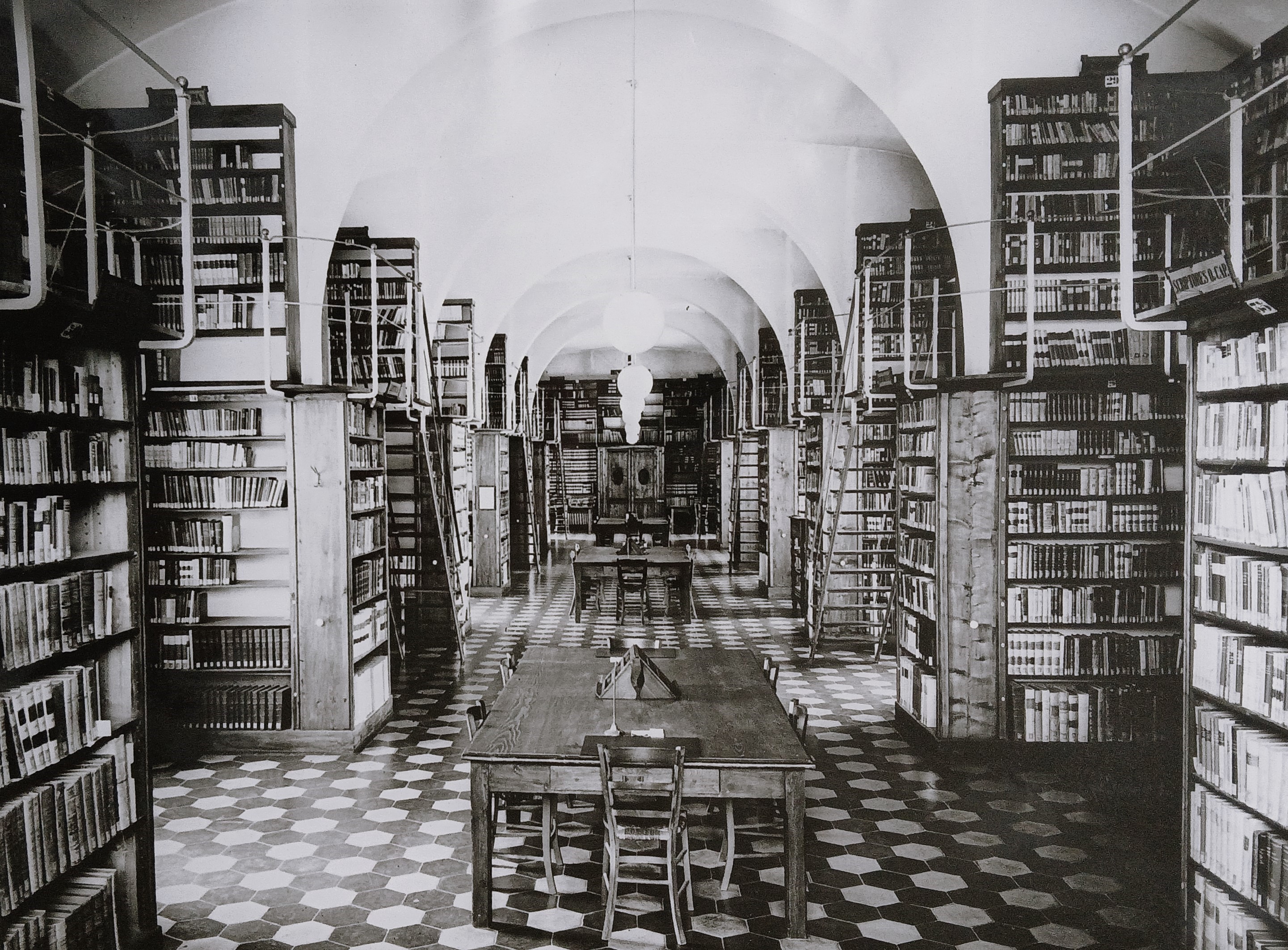 A photograph of the Capuchin Central Library (Biblioteca Centrale Cappuccini) in Rome. Founded in the second half of the nineteenth century, the library was located on the Via Boncompagni in the centre of Rome. In 1968, the library was relocated to the International College of St Lawrence of Brindisi situated on the outskirts of the city. The library has a stock of books and documents totalling 120,000 catalogued items including works by Capuchin authors, material on the early history and ministries of the Order, Franciscan publications, and many rare medieval and early modern books and items of ecclesiastical interest.