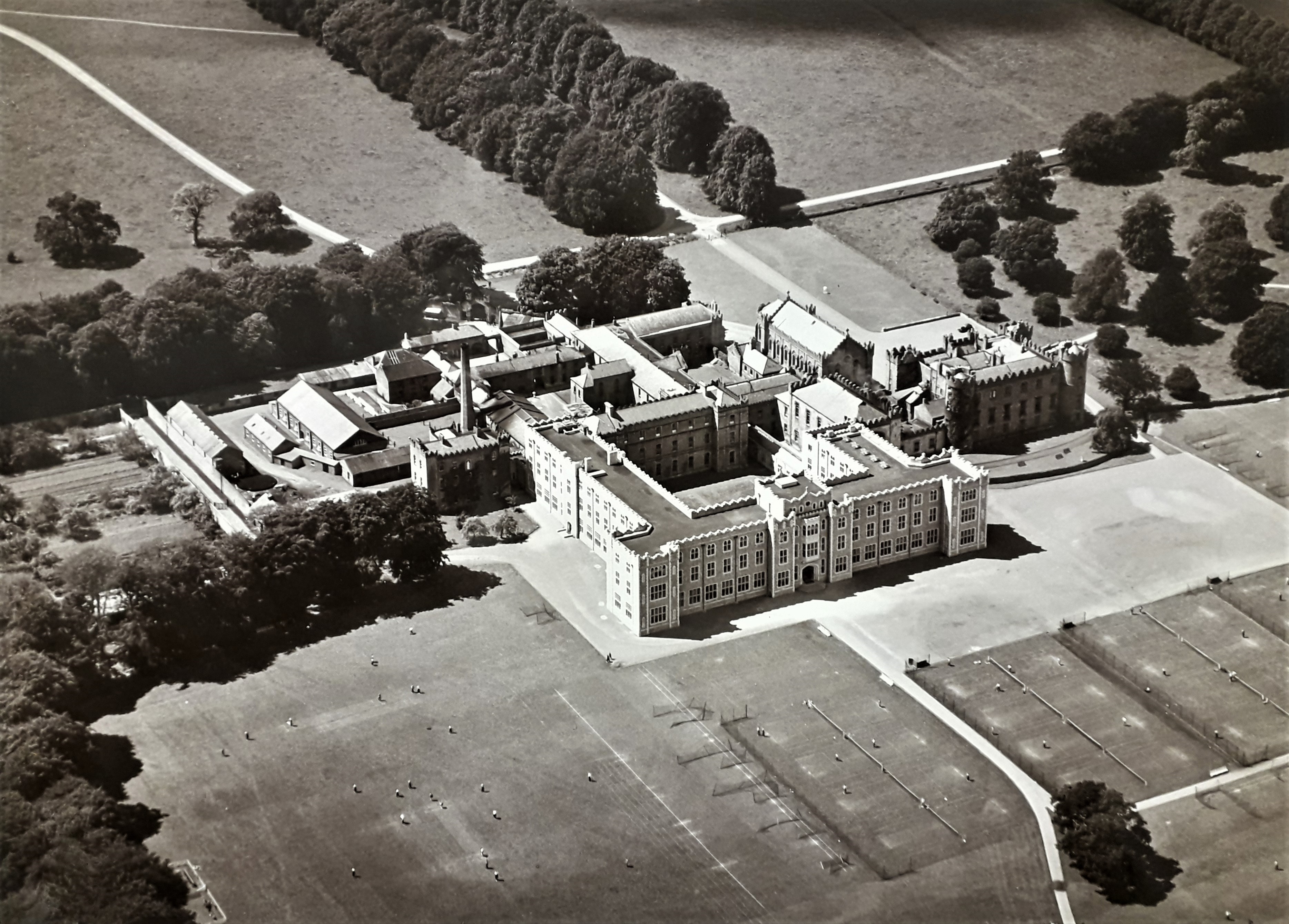 An aerial view of Clongowes Wood College near Clane in County Kildare. An annotation on the reverse of the print reads 'Army Air Corps / 11 June 1937 / Clongowes Wood College / Lens: 10” / Height: 800’.