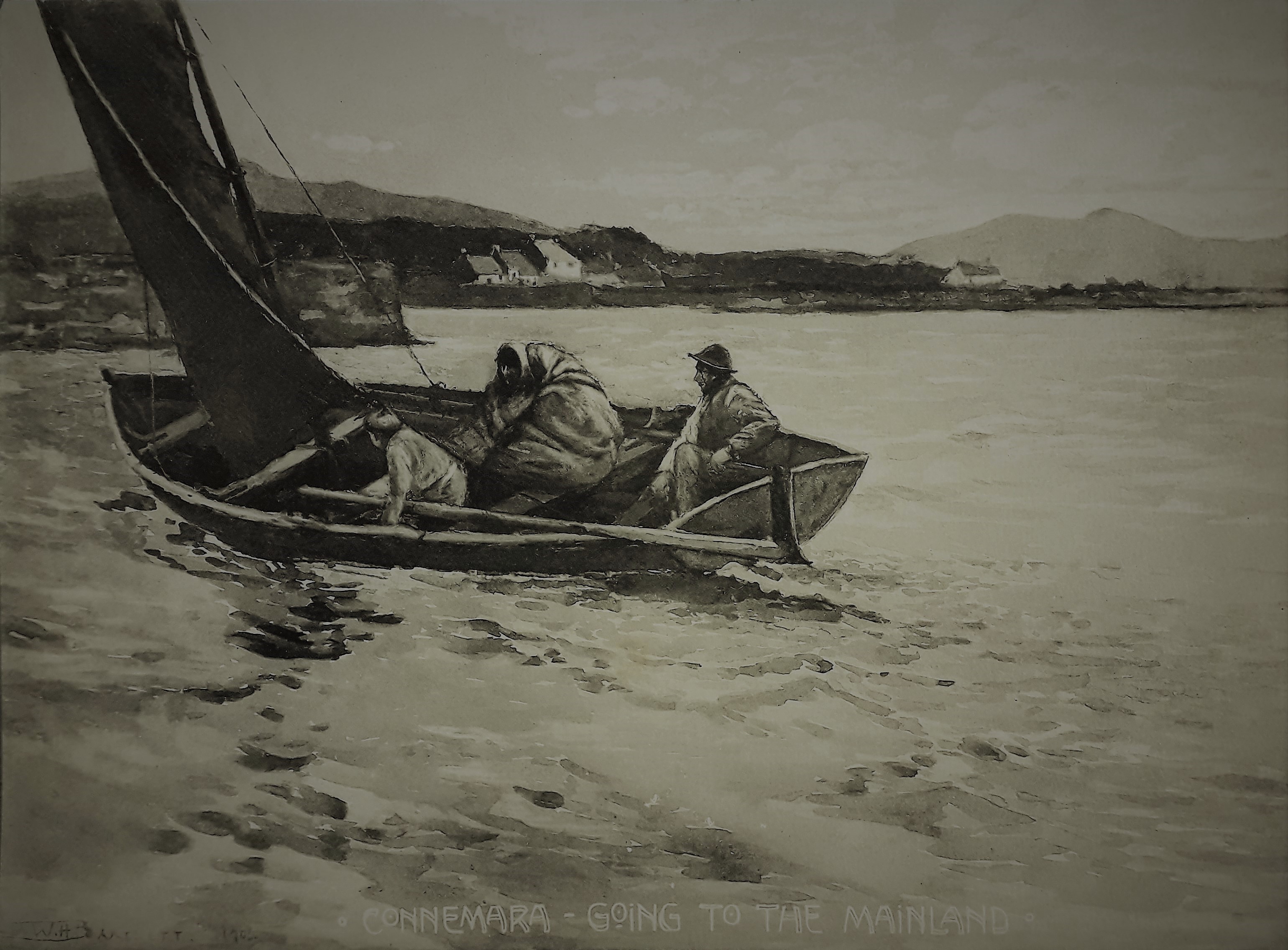 A postcard print of a painting by William Henry Bartlett (1858-1932) titled ‘Connemara - Going to the Mainland’ dating to 1903.