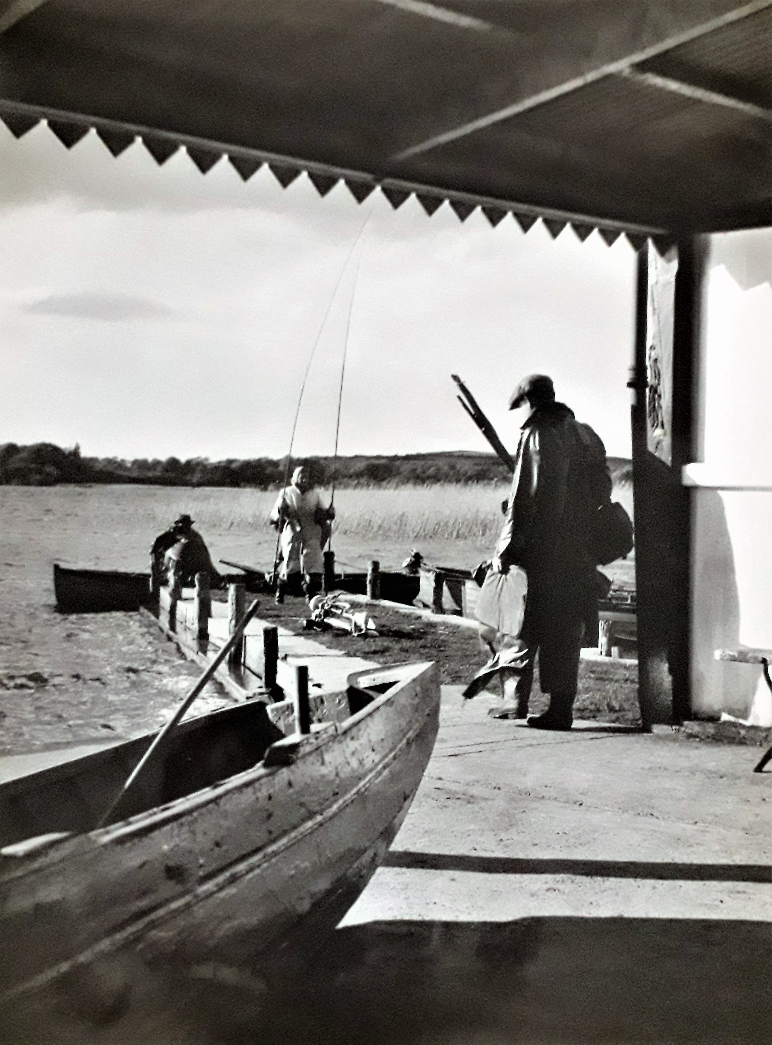 A view of a fishing party on the shores of Lough Derg in County Tipperary in about 1960.