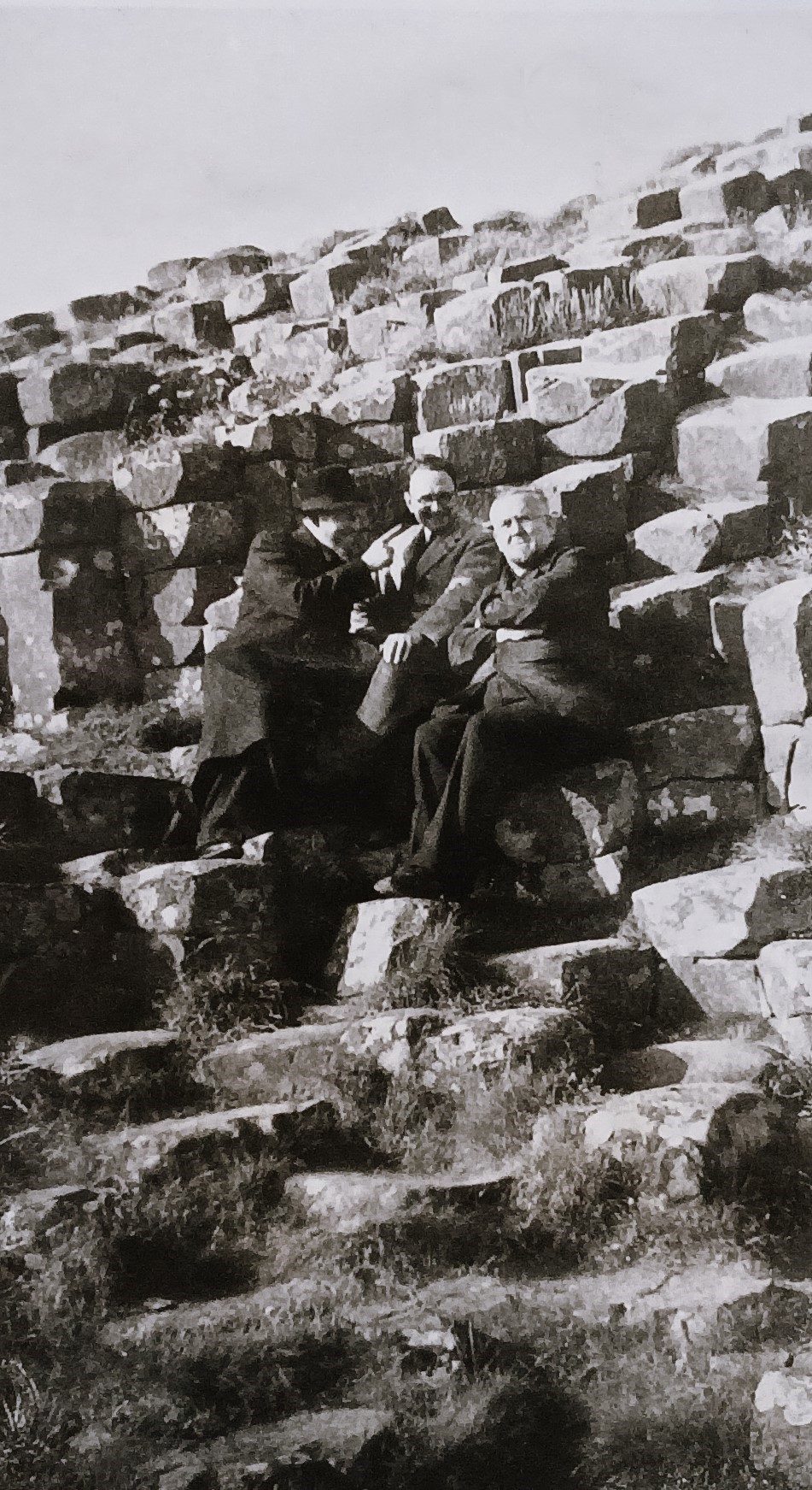 A photograph of (right) Fr. Senan Moynihan OFM Cap. with two other individuals at the Giant’s Causeway in County Antrim. The individual on the left is most likely Fr. Gerald McCann OFM Cap.