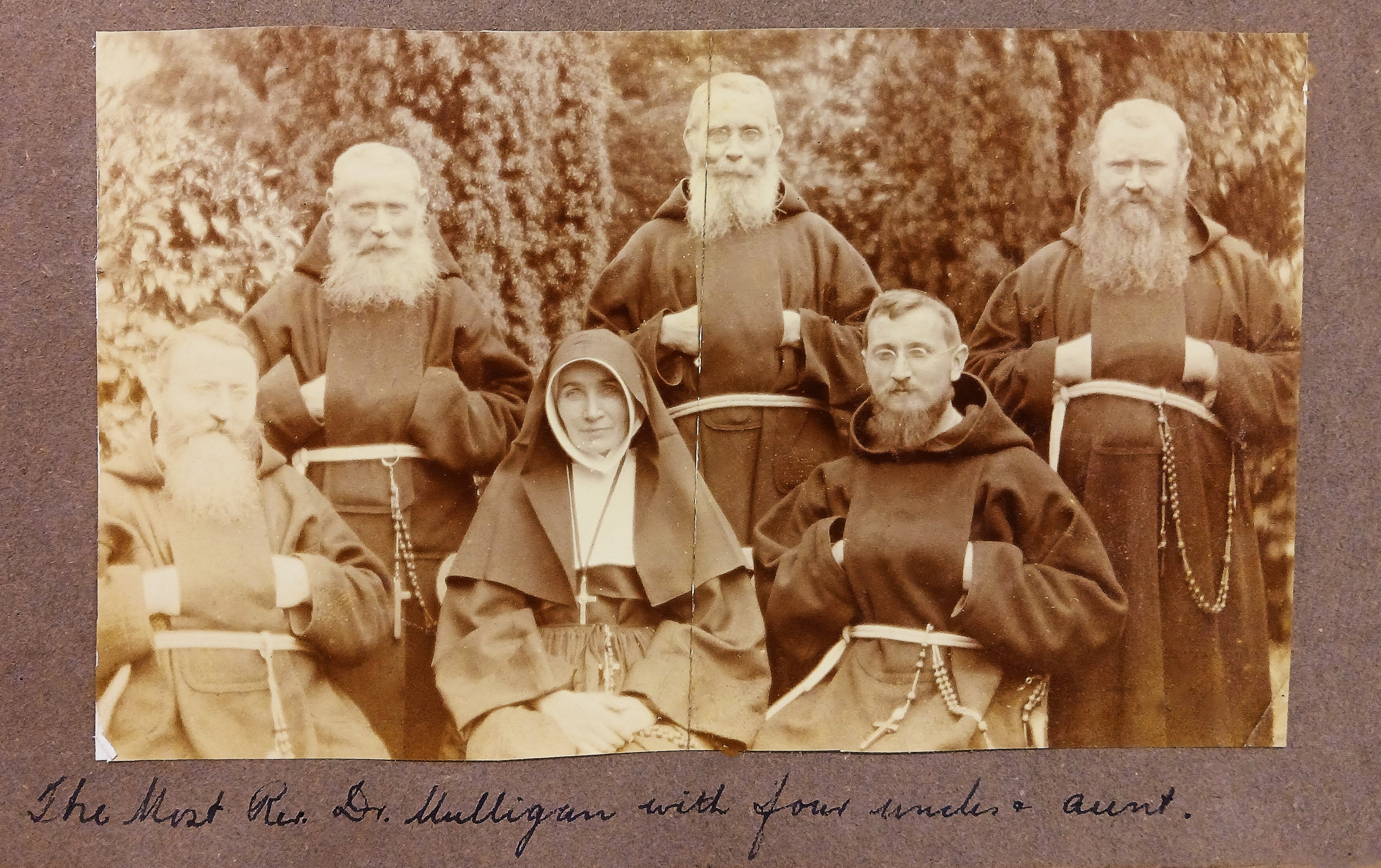 A photograph of Fr. Sylvester Mulligan OFM Cap. (seated, on the right), with four of his uncles and an aunt (all of whom are religious). One of the friars is presumably Fr. Anthony Brennan OFM Cap. of Tasson.