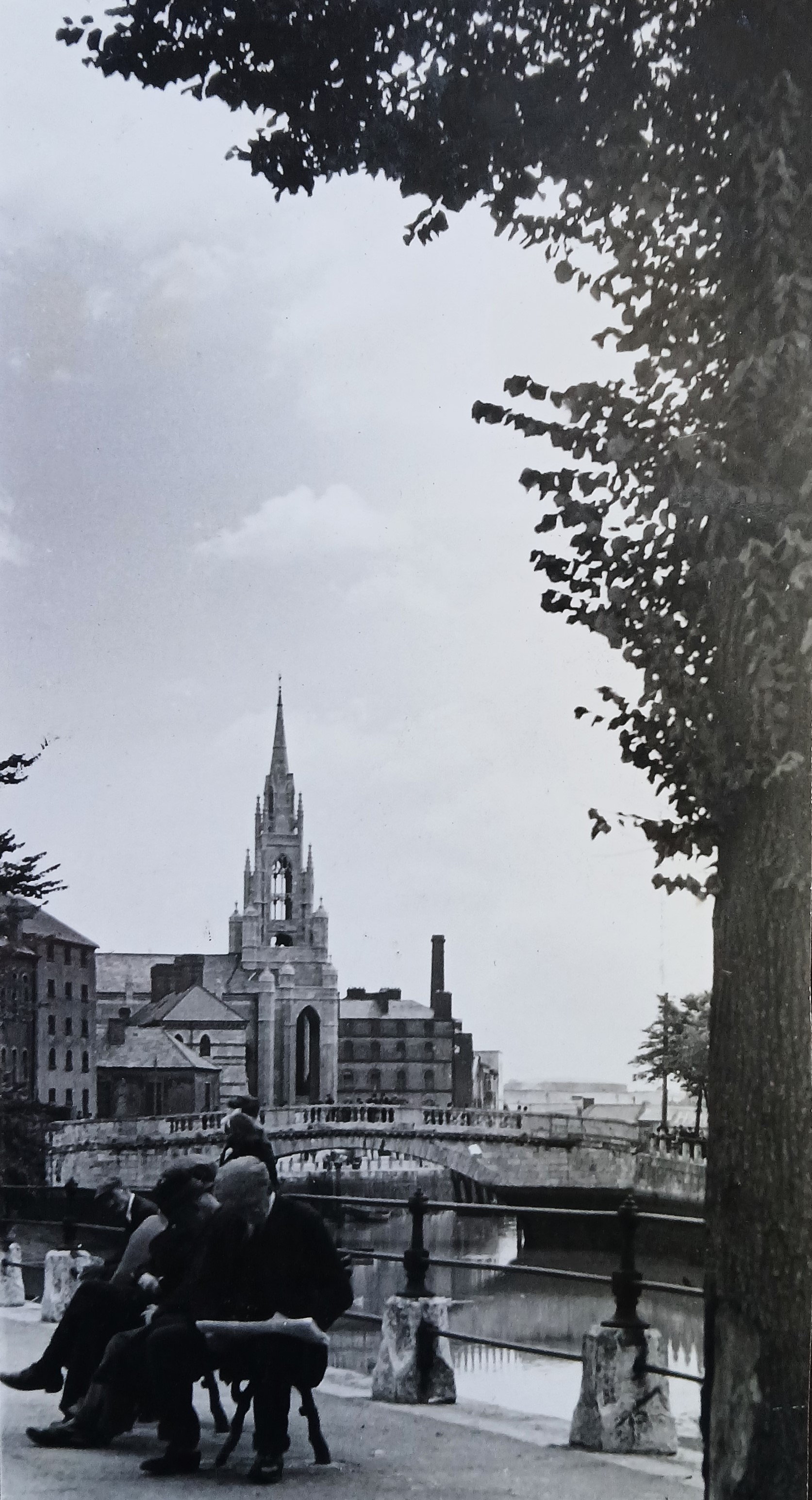 A photograph of Parliament Bridge and Holy Trinity (Capuchin) Church in Cork.