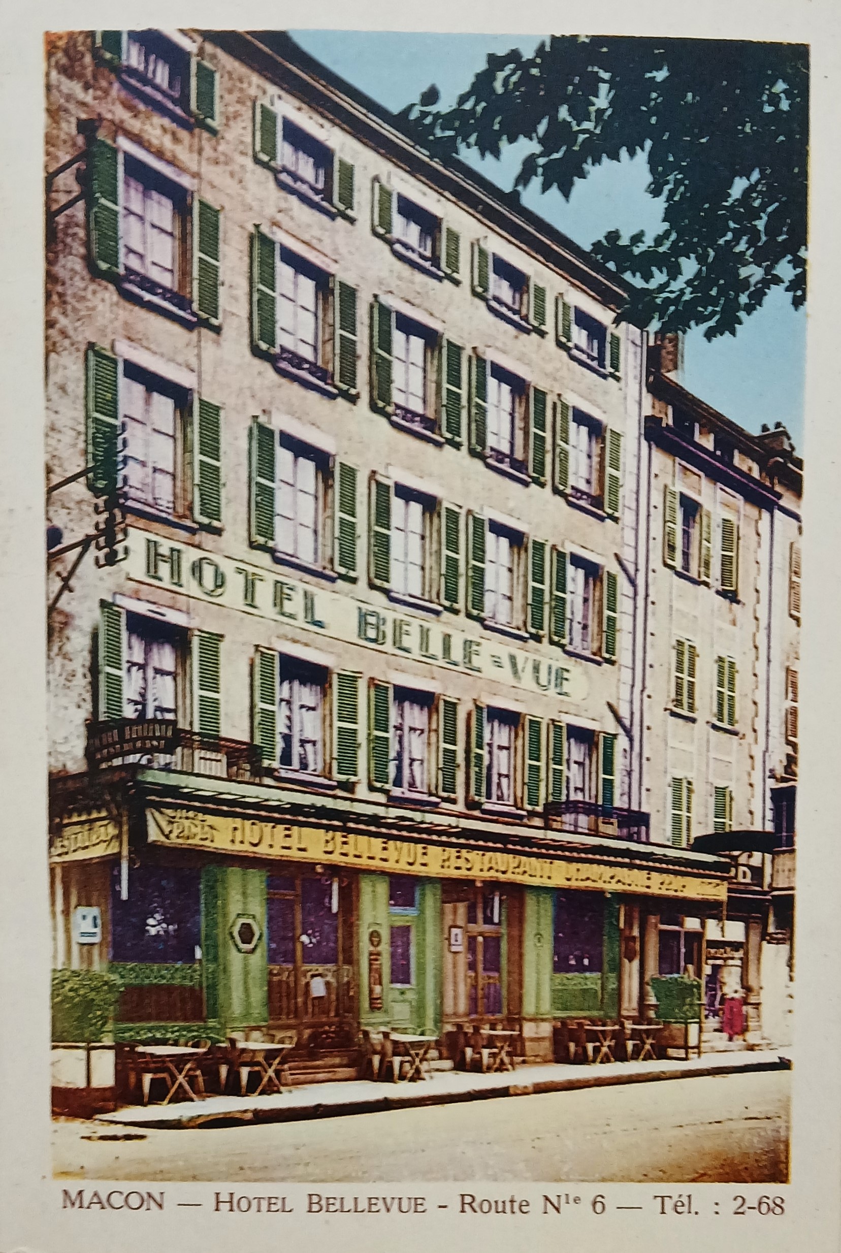 A picture postcard of the exterior of the Hotel Bellevue in Mâcon, France.