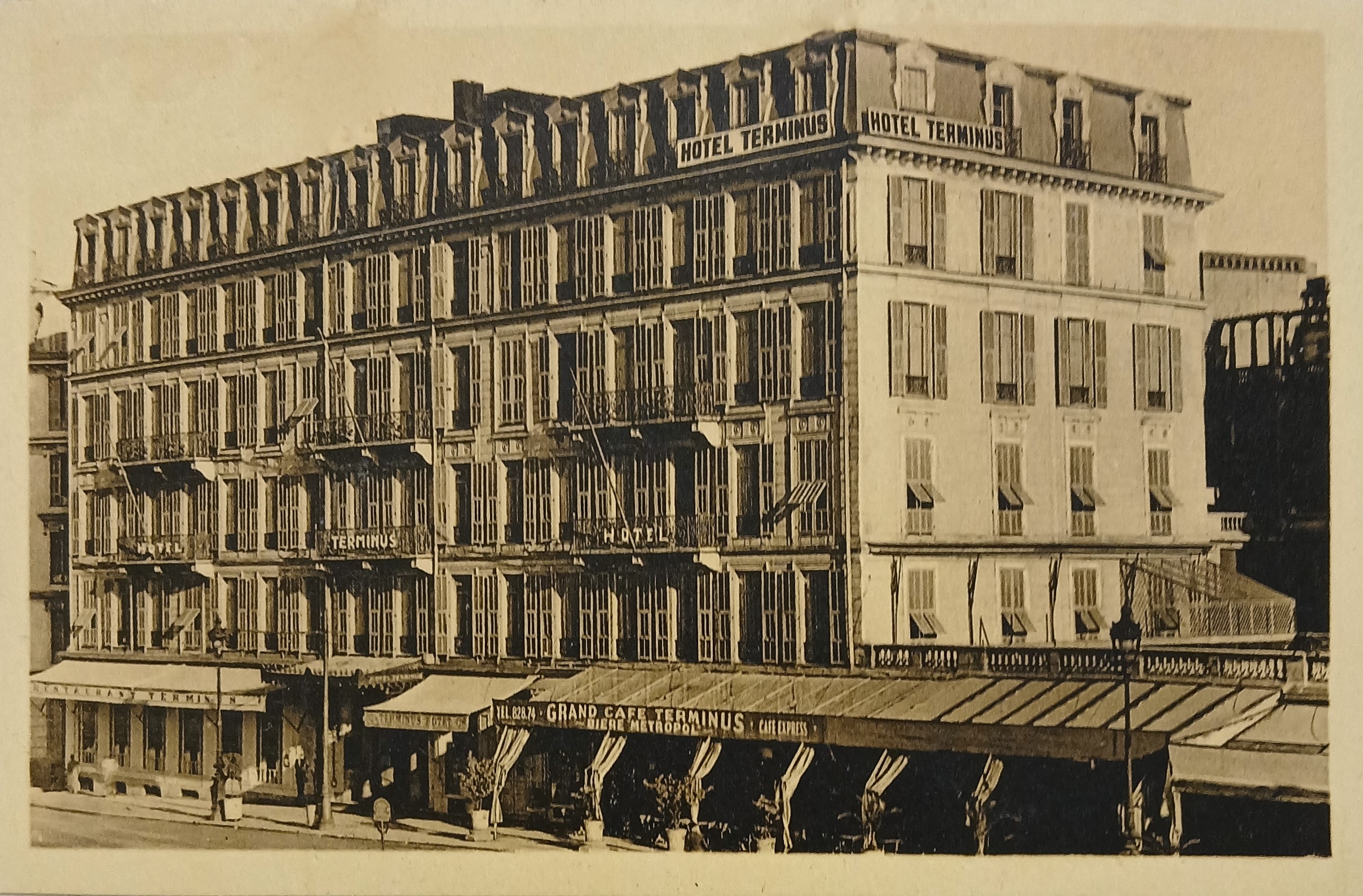 A picture postcard of the exterior of the Hôtel Terminus in Nice, France.
