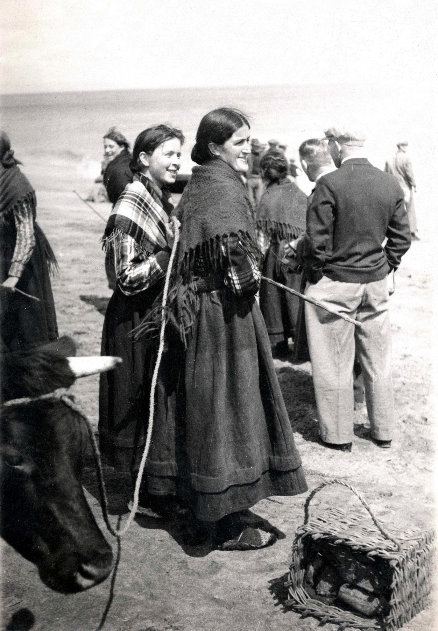A view of two women at a fair on Inishmaan (Inis Meáin), one of the Aran Islands off Galway on Ireland’s Atlantic Coast, in about 1940.