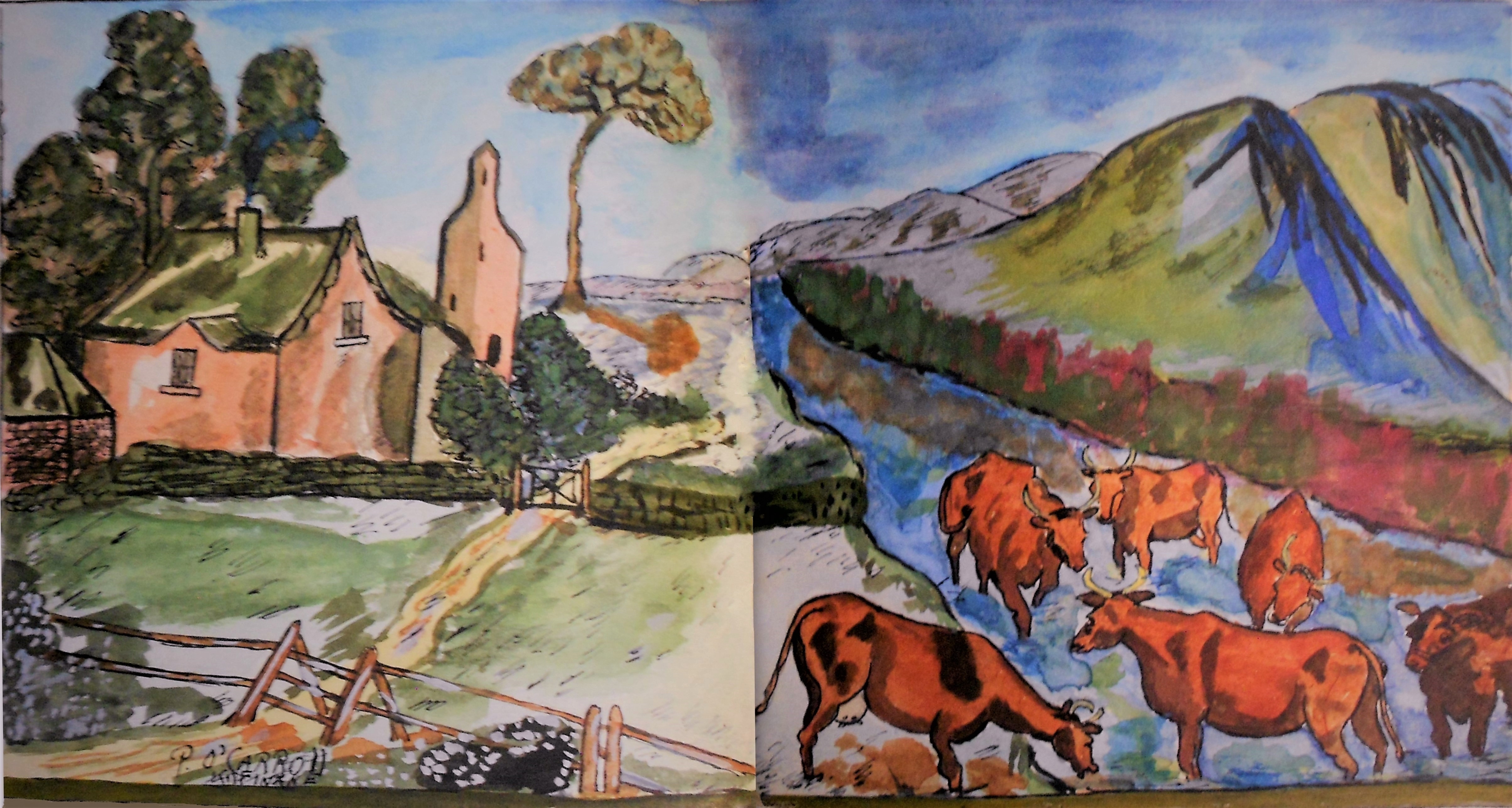 A sketch (coloured ink on paper) by Patrick O'Carroll titled 'An Afternoon's Drink' presumably penned while he was incarcerated in Limerick Jail in early 1923. The work is signed in the bottom right-hand corner 'P. O'Carroll / Kilfinane'.