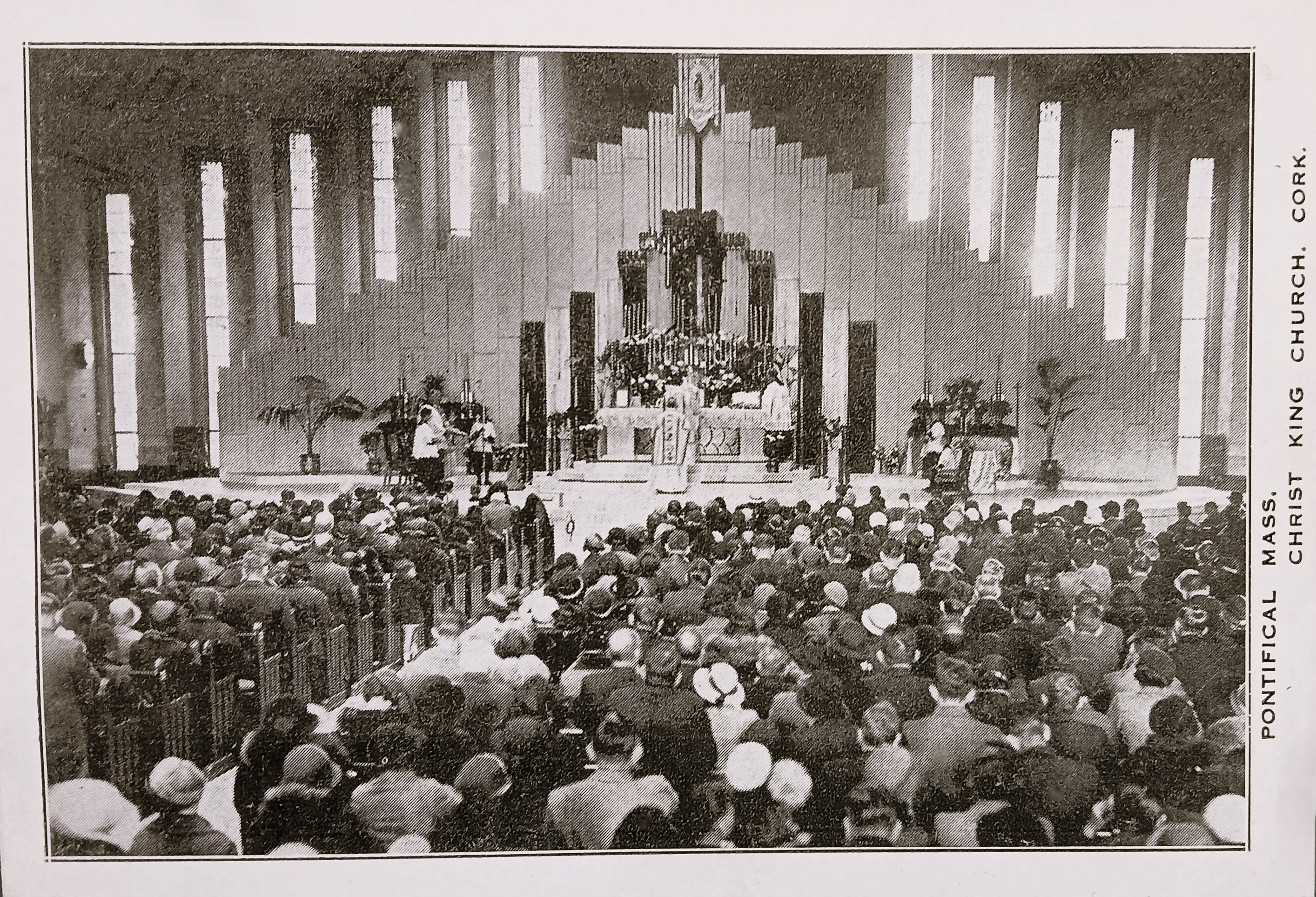 A postcard print view titled 'Pontifical Mass / Christ King Church, Cork'.