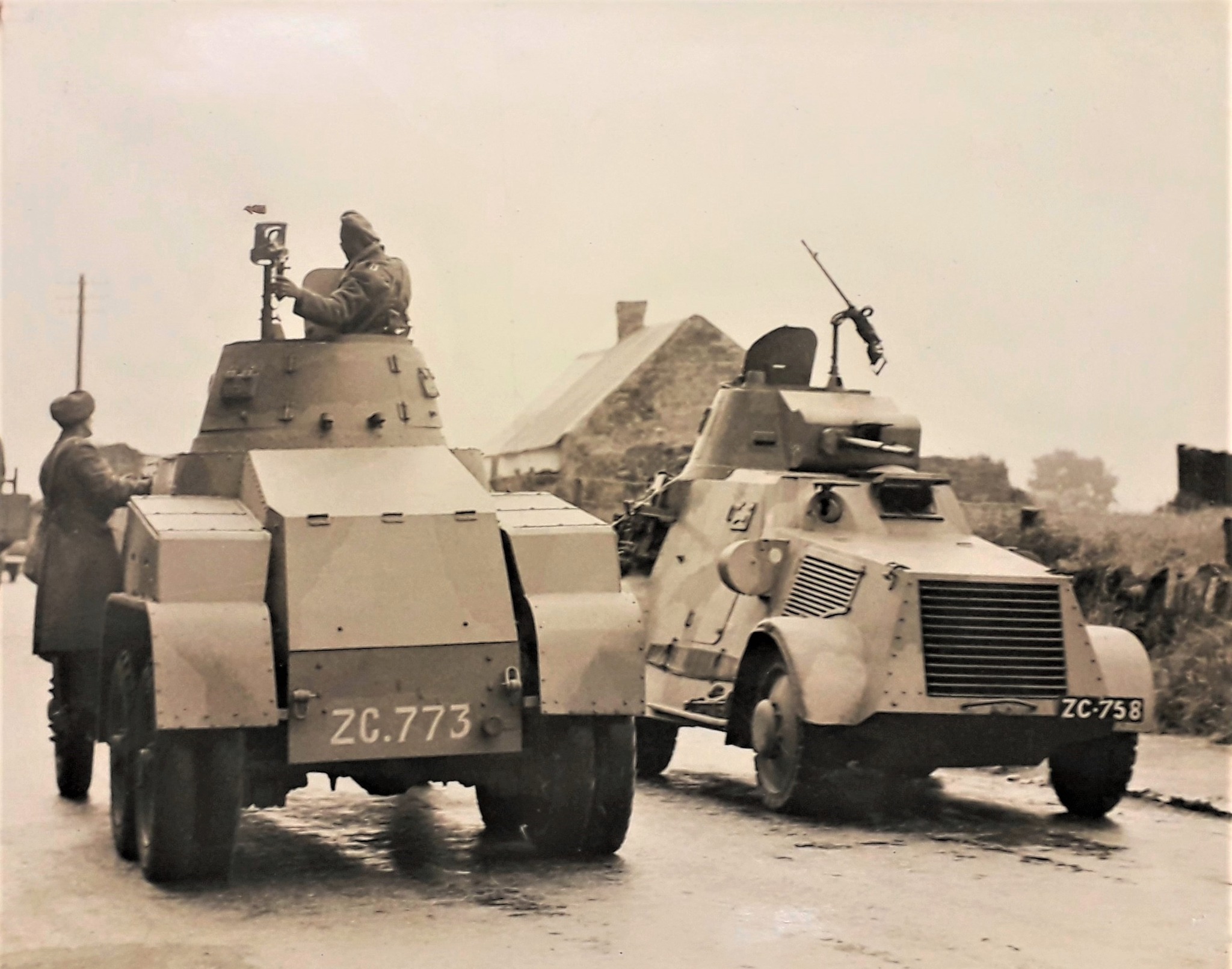 An image of Irish Army armoured cars on manoeuvres in the countryside. The vehicles are most likely Swedish-built Landsverk armoured cars. The print is credited to the ‘Irish Press’.
