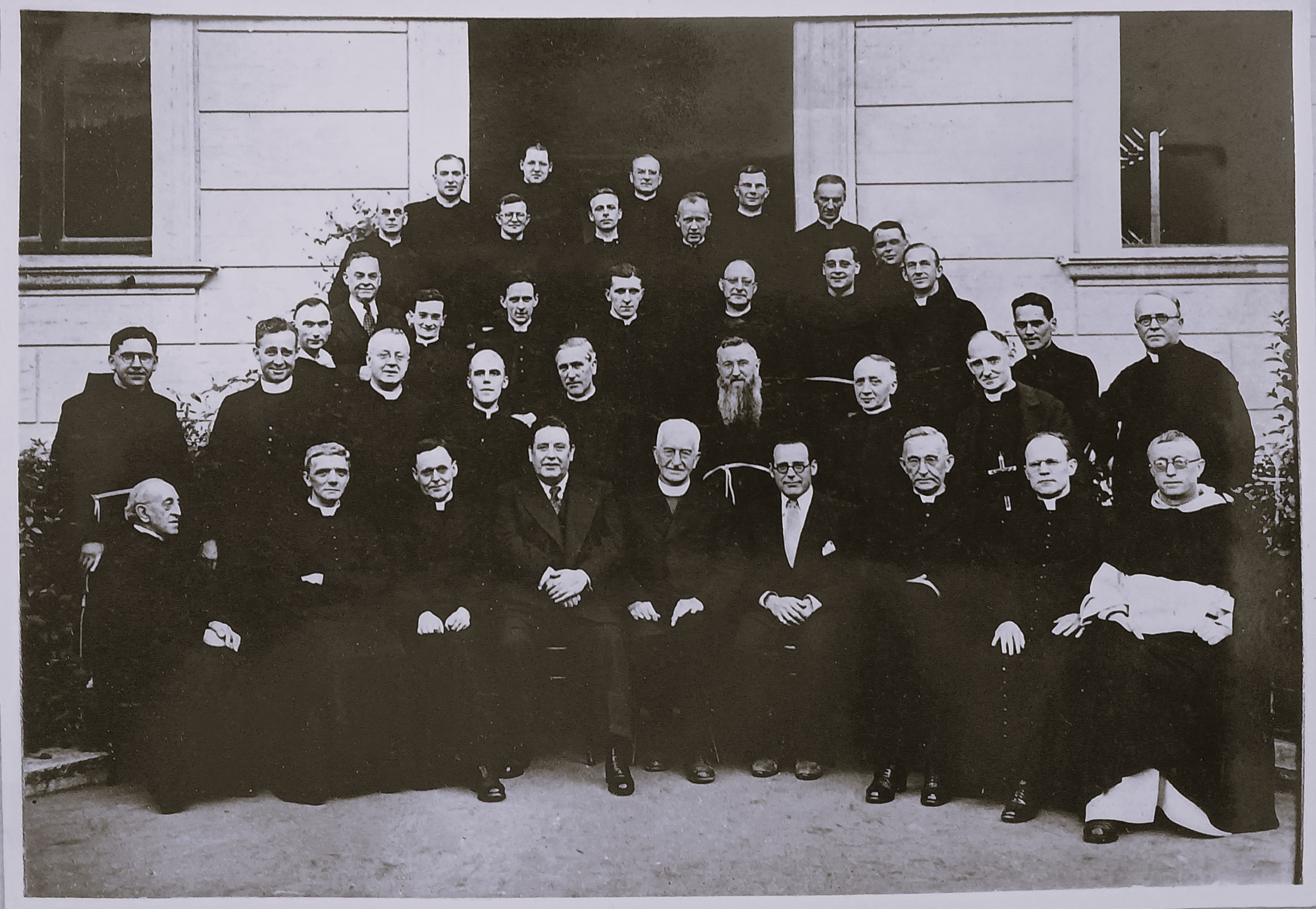 A photograph of John McCormack with a large group of clerics and religious in Rome. The group includes Fr. Sylvester Mulligan OFM Cap., Capuchin Definitor General.