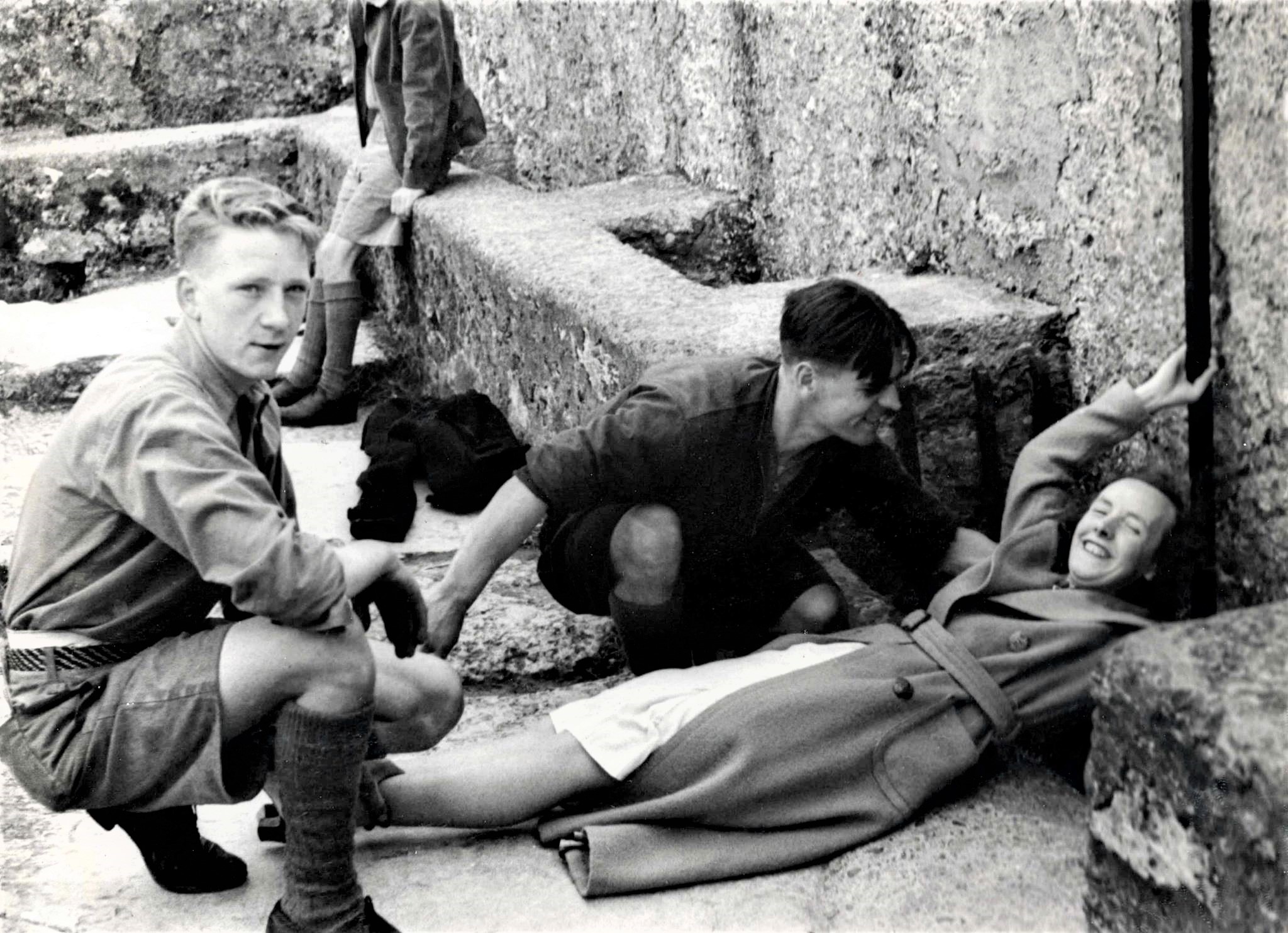 A view of the Blarney Stone in about 1945. According to legend, kissing the stone (which is built into the battlements of Blarney Castle, County Cork) bestows upon the person the gift of eloquence and persuasiveness.