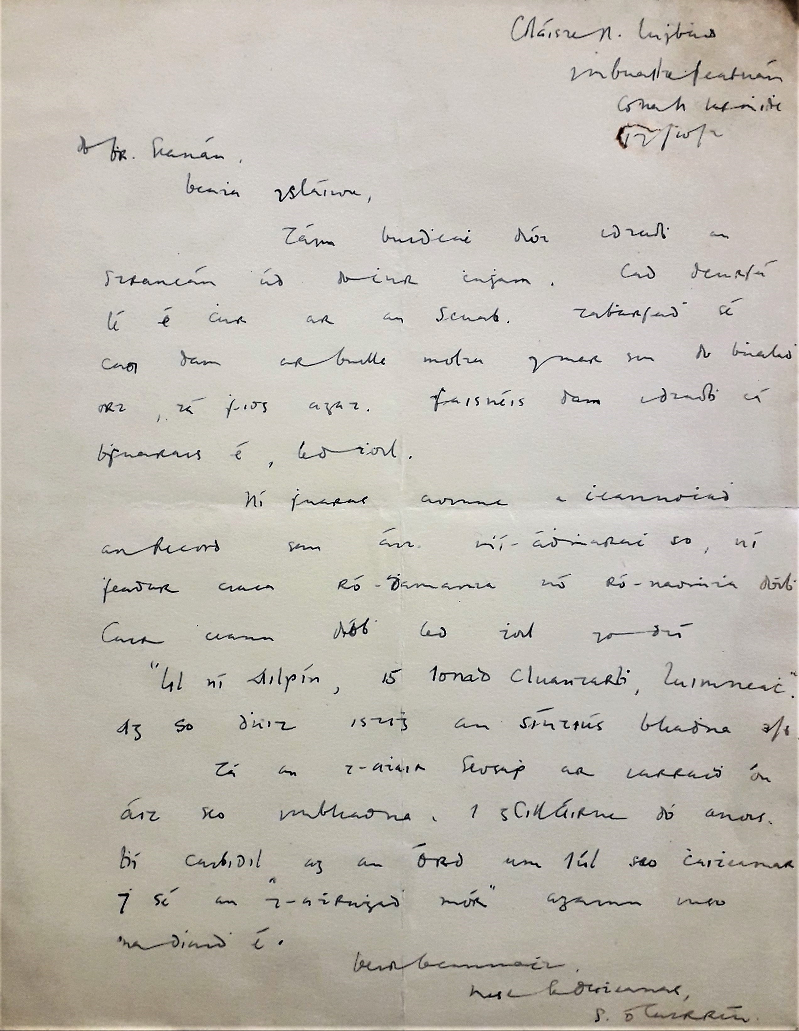 Letter from Seán Ó Cuirrín