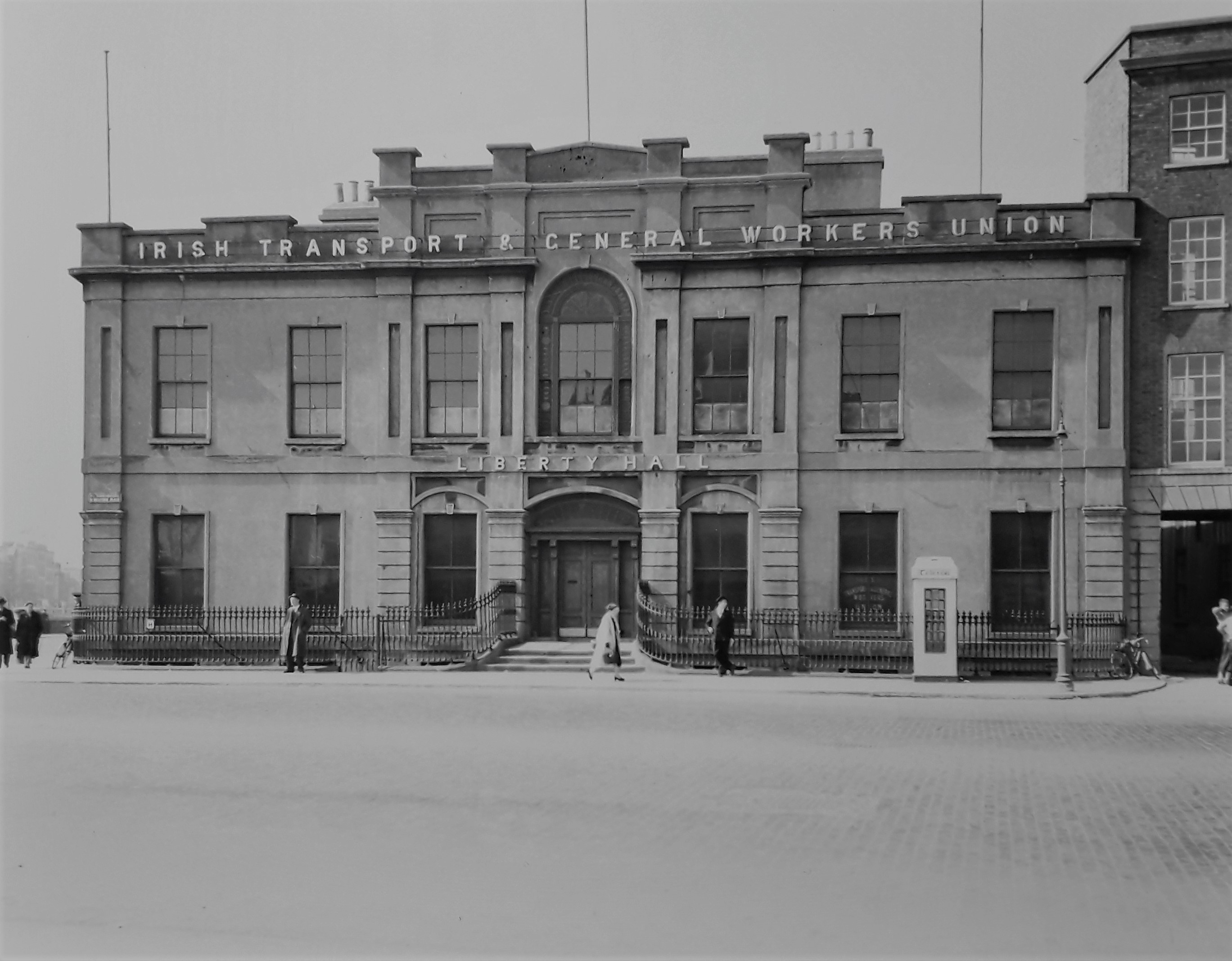 An image of Liberty Hall at the corner of Beresford Place and Eden Quay in Dublin shortly before its demolition in the late 1950s.