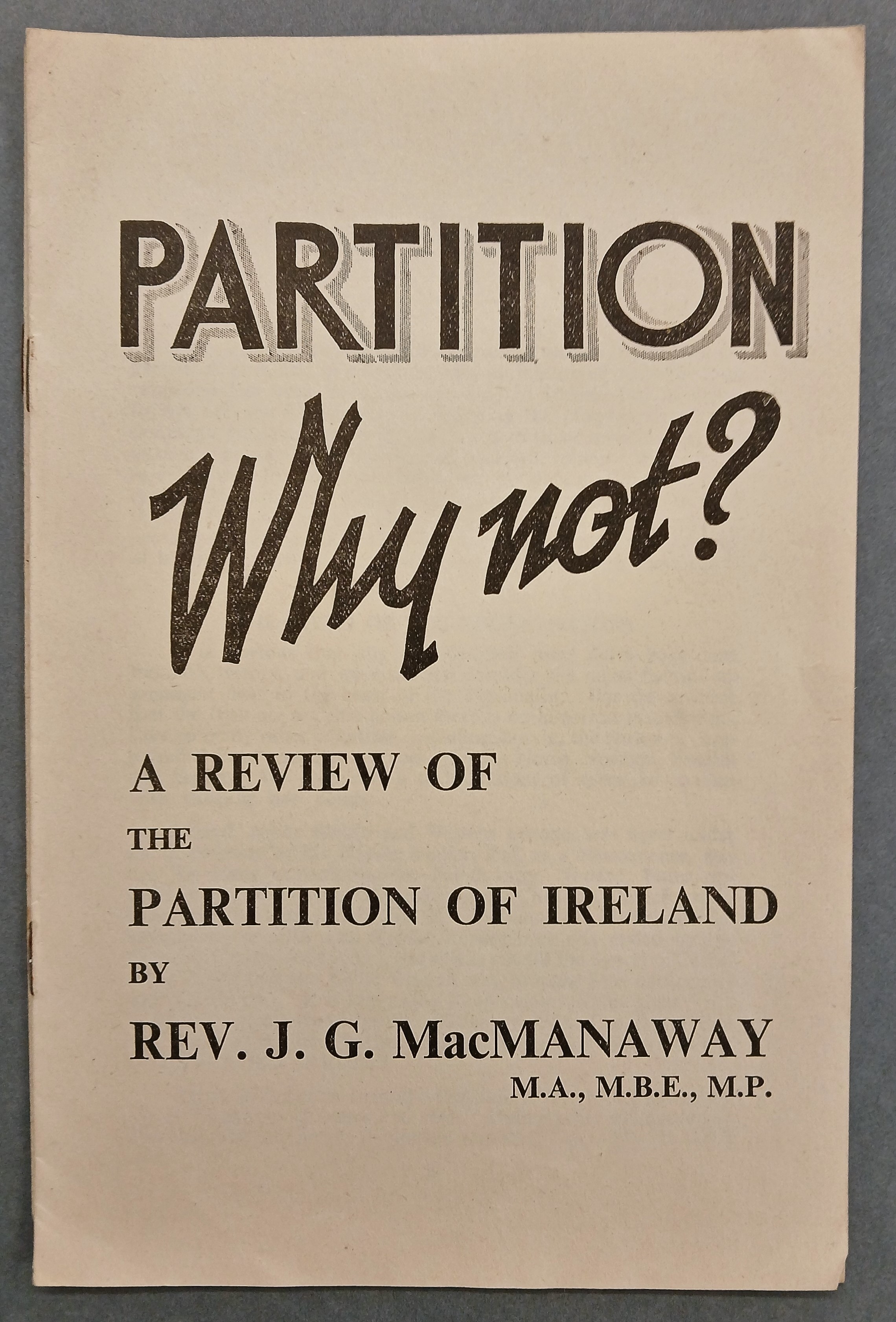 Rev. J.G. MacManaway, ‘Partition / Why Not? / A review of the Partition of Ireland’ (Belfast: Ulster Unionist Council, [c.1949]).
