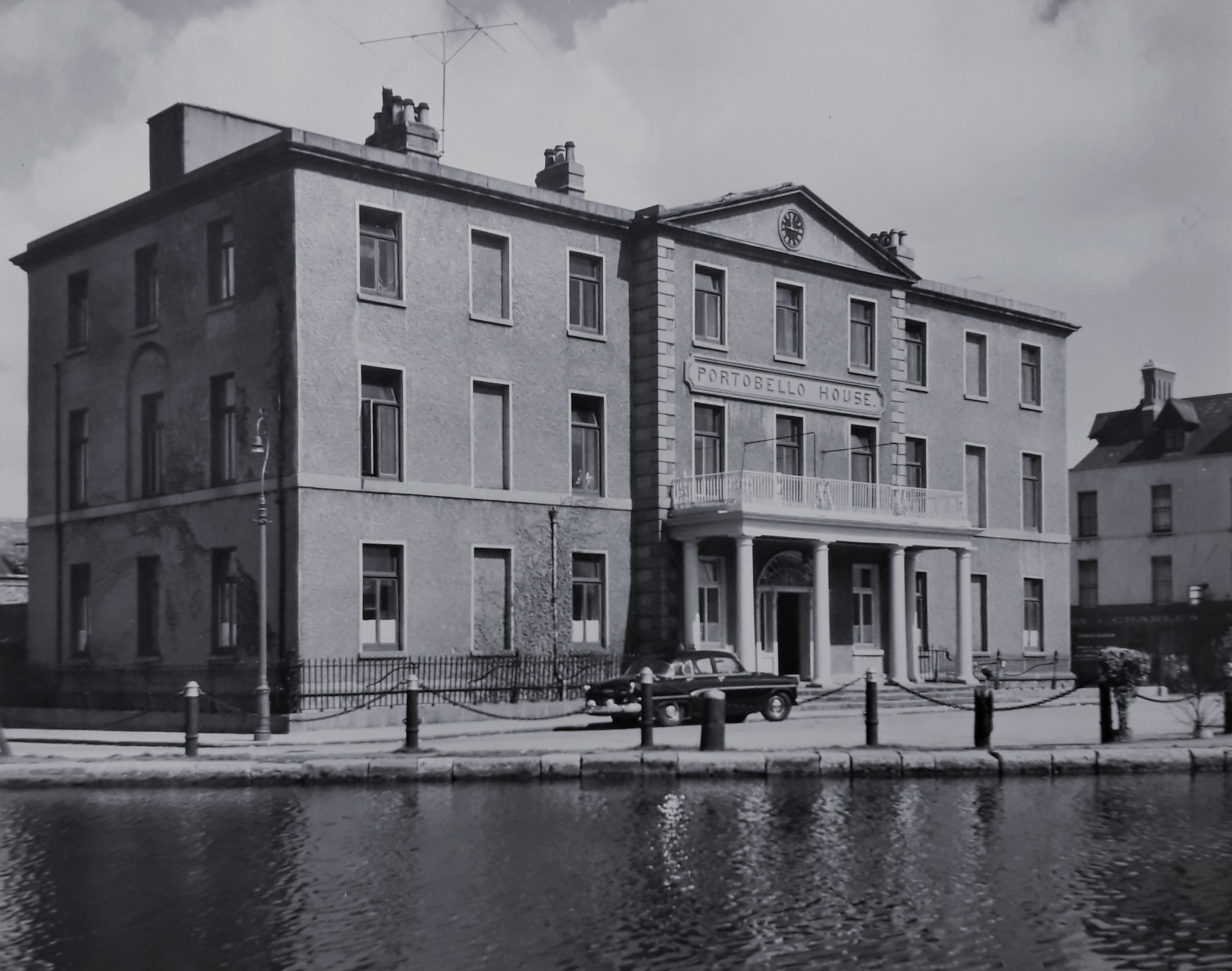 A view of Portobello House on Richmond Row in Dublin in about 1955. The building was originally constructed as a hotel between 1805 and 1807. It later became a nursing home. The building is now occupied by Atlas Language School.