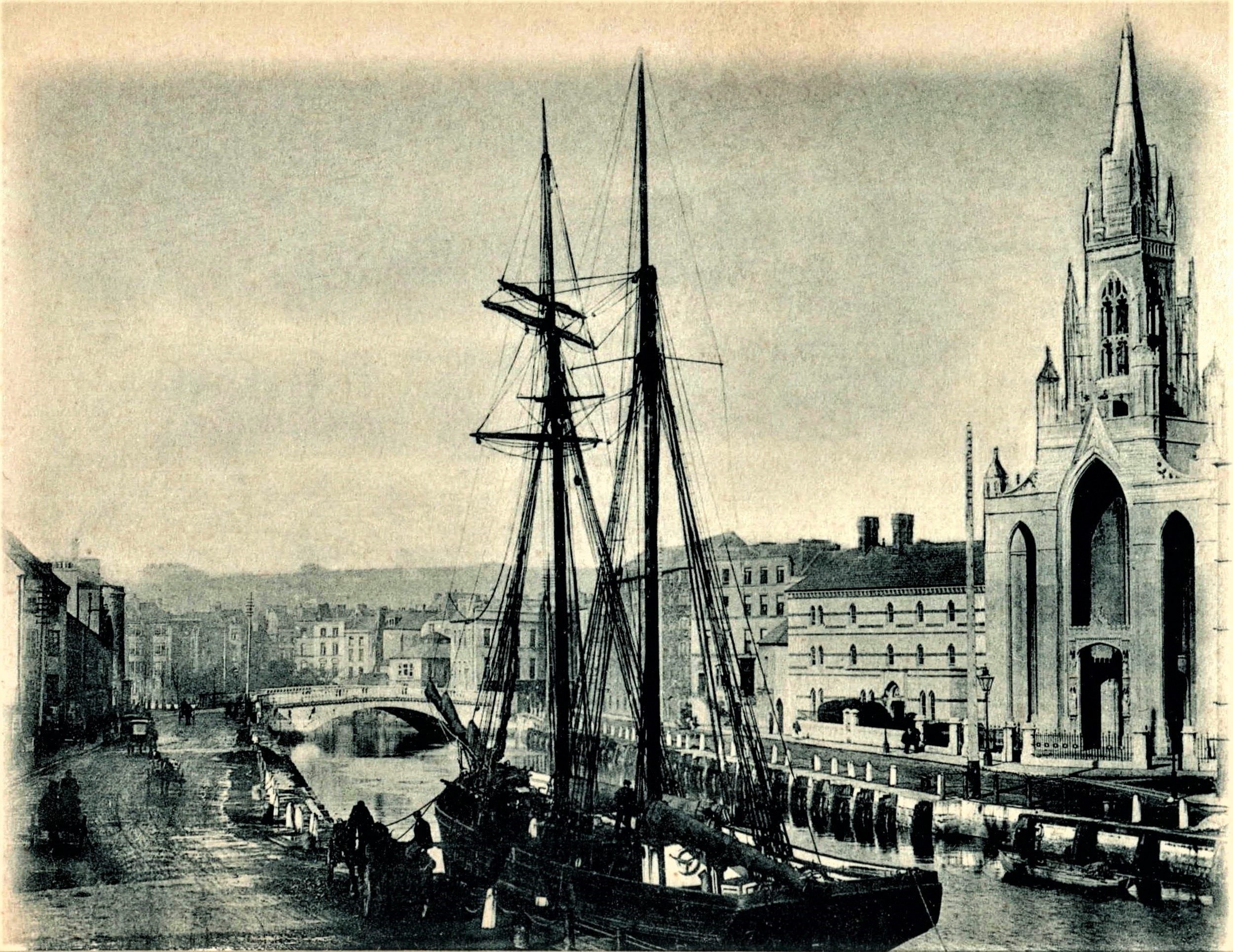 A set of three postcard prints of the exterior of Holy Trinity Church on Father Mathew Quay in Cork. One of the postcards is part of the ‘Valentine’s “Sepiatype” series’.