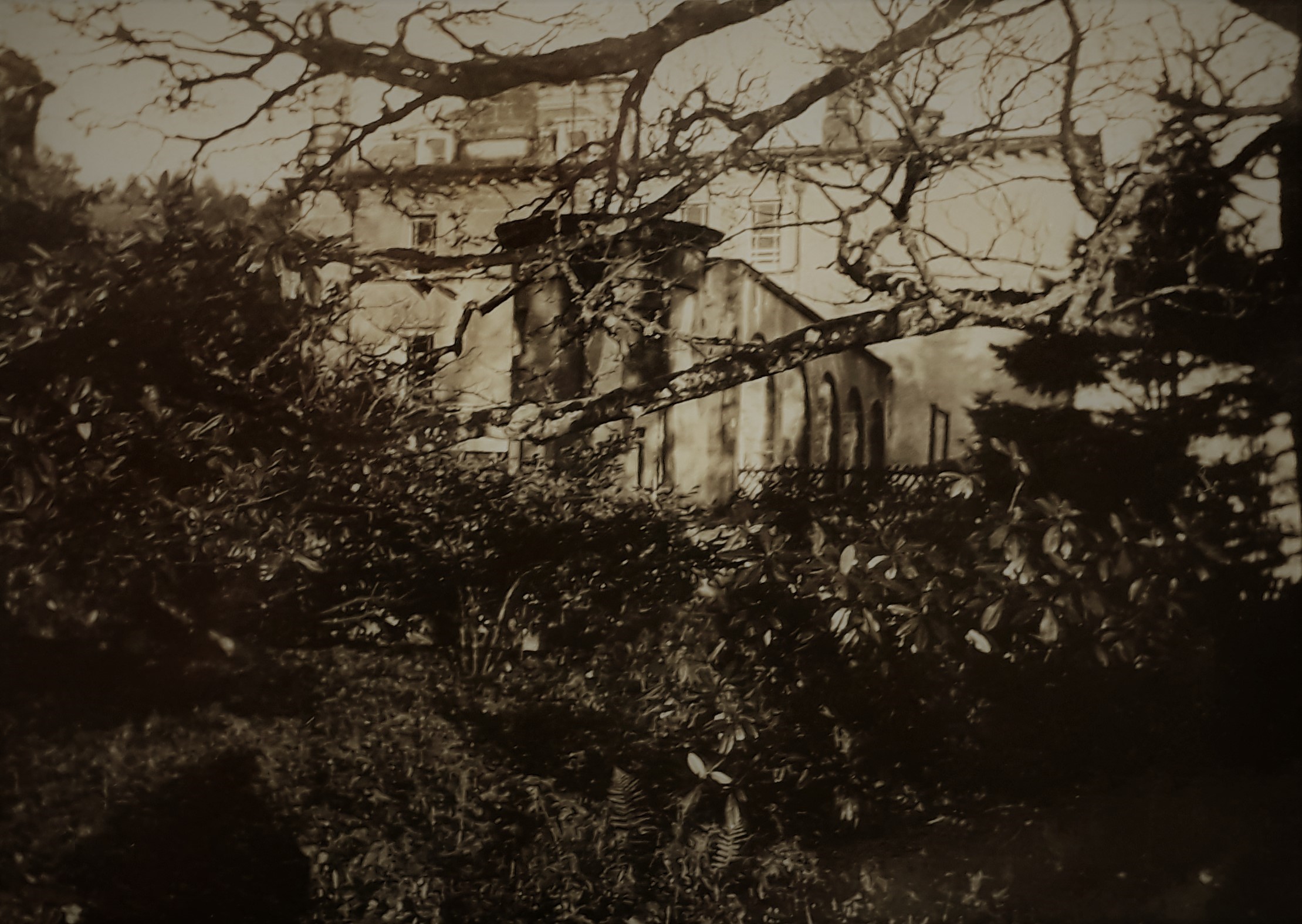 A view of the rear of Ard Mhuire Friary (formerly Ards House) in County Donegal. A manuscript annotation on the reverse of the print reads 'rear view of Ards House'.