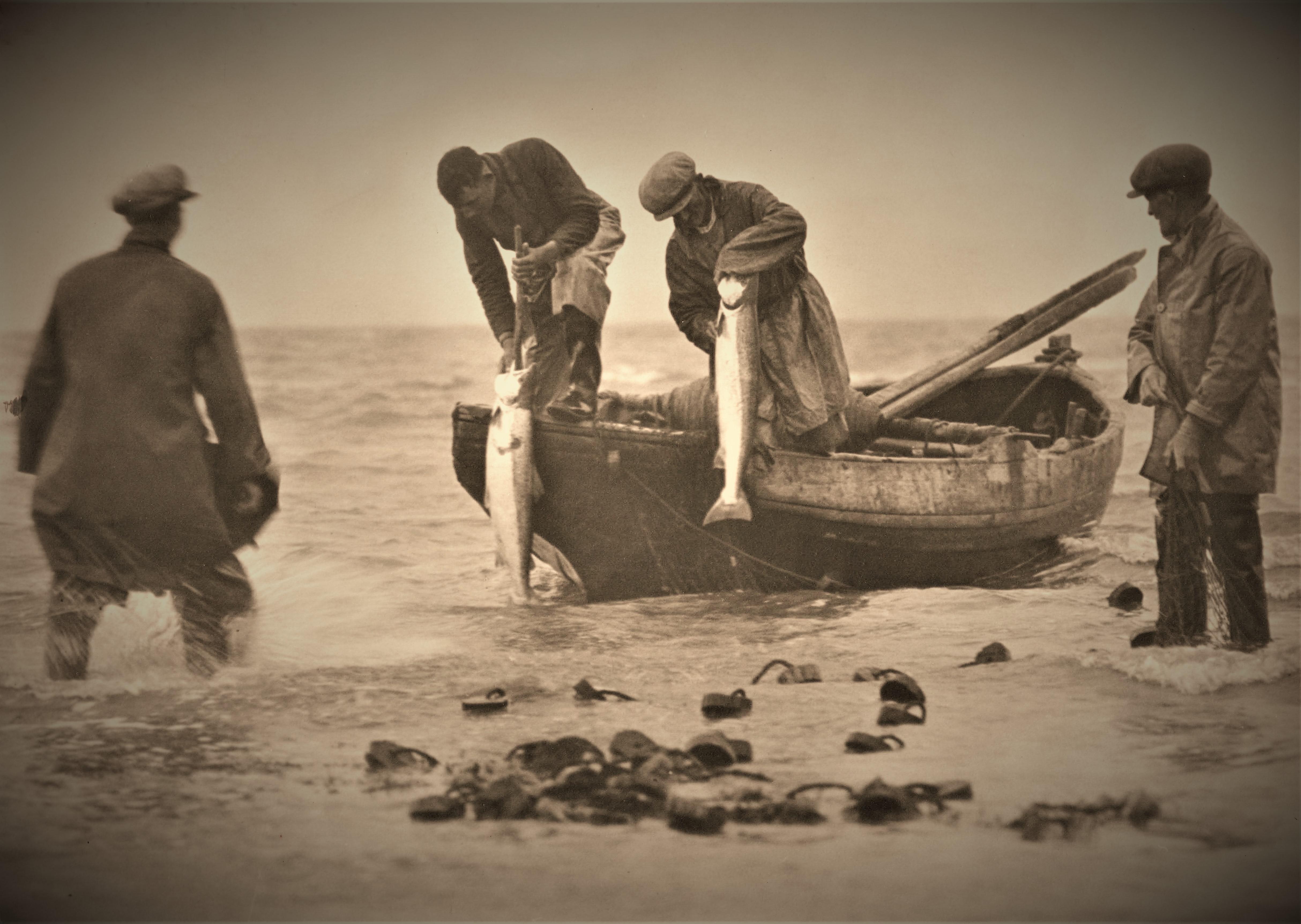 An image of a catch of salmon near Annagassan in County Louth in about 1930.