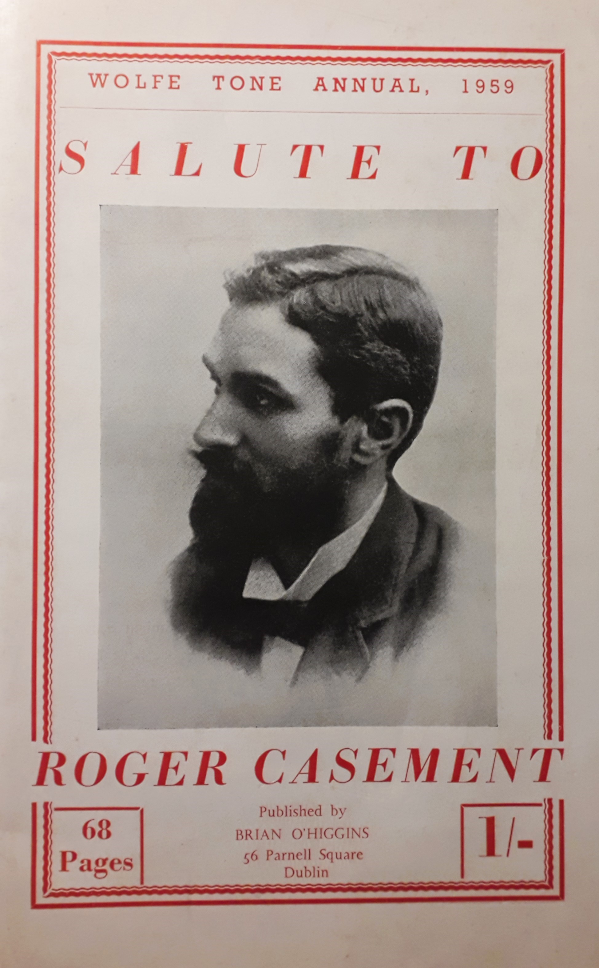 A copy of the ‘Wolfe Tone Annual, 1959 / Salute to Roger Casement’. Published by Brian O’Higgins, 56 Parnell Square, Dublin.