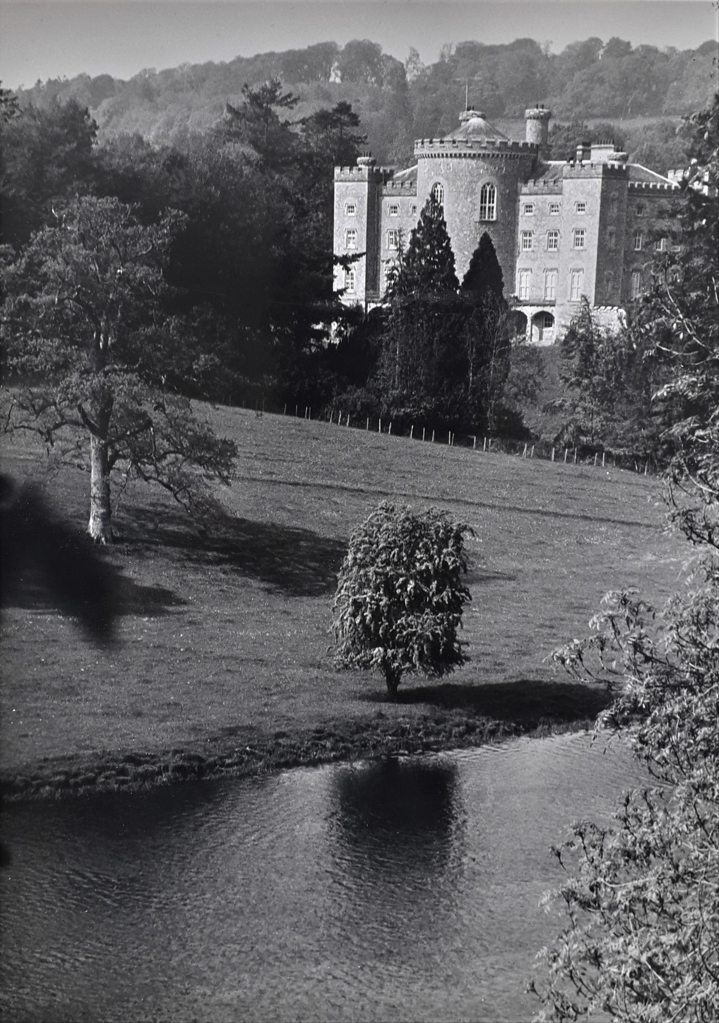 An image of Slane Castle and its surrounding parkland in County Meath. A manuscript annotation on the reverse of the print reads 'Slane Castle and the River Boyne / County Meath'.